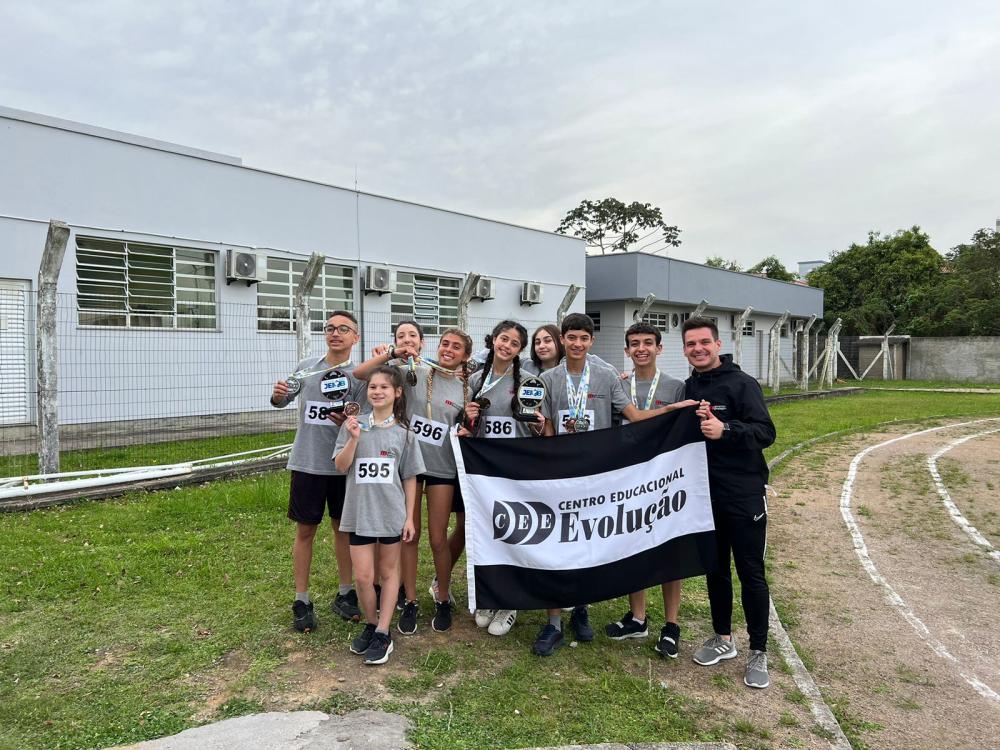 Parabéns a todos os nossos atletas por essas conquistas fenomenais. Vocês são a prova viva de que com determinação e paixão, podemos alcançar grandes alturas! Juntos somos invencíveis! #EscolaEvolução #TalentosNoEsporte #OrgulhoEvolução #JEIMB2023 #ConciliandoEstudoETreino