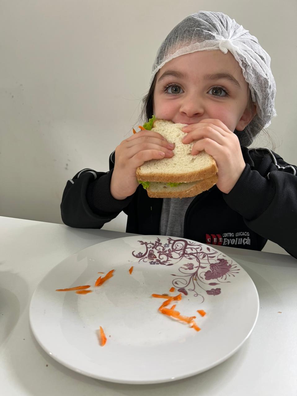 As turmas do Jardim I reproduziram o sanduíche da história “Sanduíche da Maricota”, e o resultado foi simplesmente delicioso! Essa atividade não só permitiu que os alunos aprendessem sobre os alimentos saudáveis que compõem um sanduíche nutritivo, mas também os ensinou sobre a importância de comer de forma equilibrada e saudável.