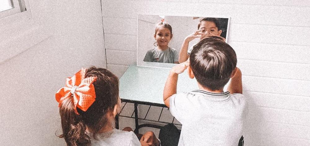 Brincadeira do reflexo, observando as características físicas. Pré I Professora: Raffaela